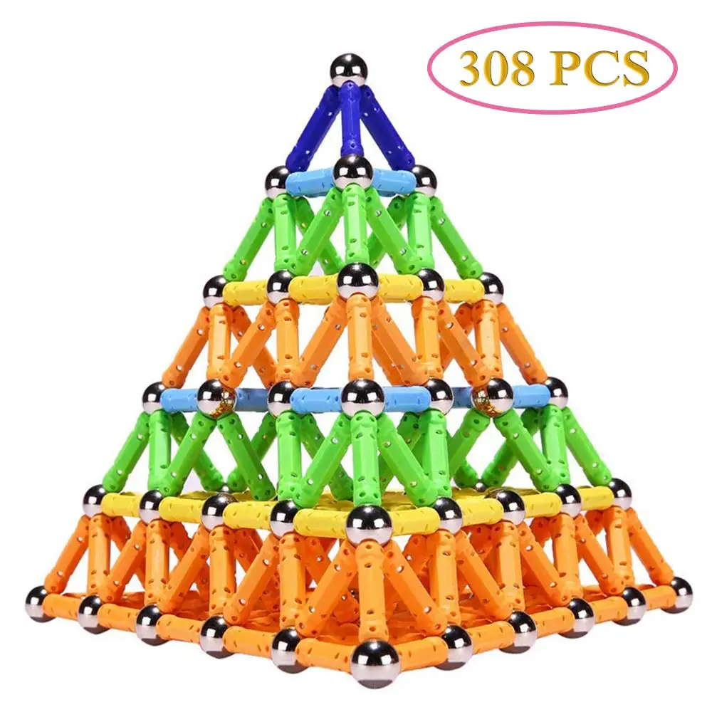 308 Pieces Magnet Toy Sticks & Metal Balls Magnetic Building Blocks Construction Toys Kids Designer