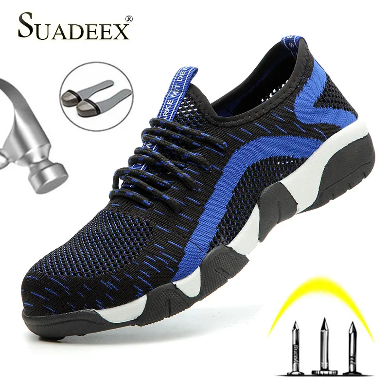 SUASEEX Safety Shoes Men Air Mesh Breathable Working Sneakers Anti-Smashing Puncture Proof Construc